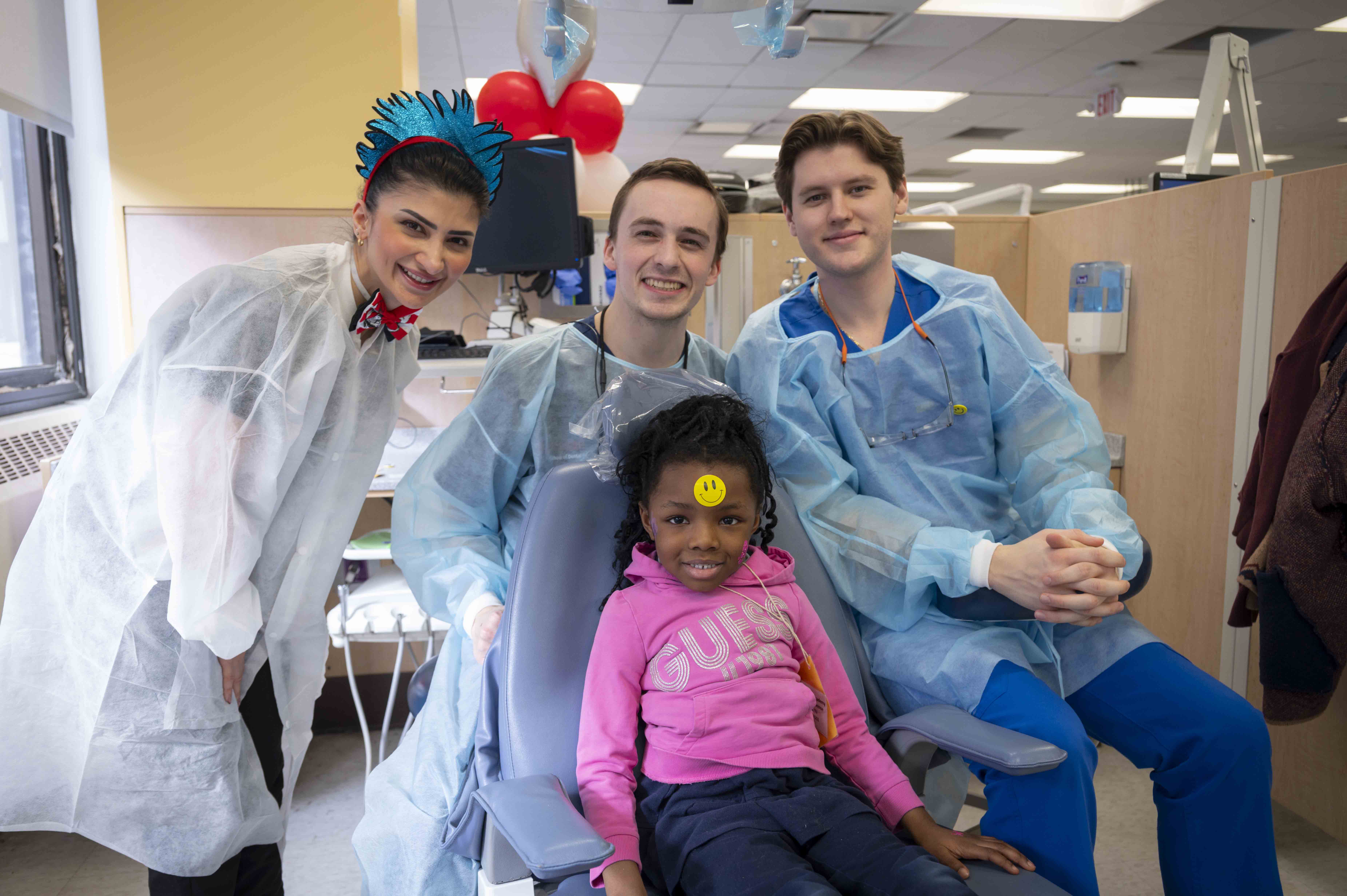 Bright decorations, music and costumed volunteers filled the Rutgers School of Dental Medicine in Newark as the school celebrated its annual Give Kids a Smile Day on Feb. 6, a part of the nationwide American Dental Association Foundation initiative that provides free dental care to underserved children each February during National Children’s Dental Health Month.