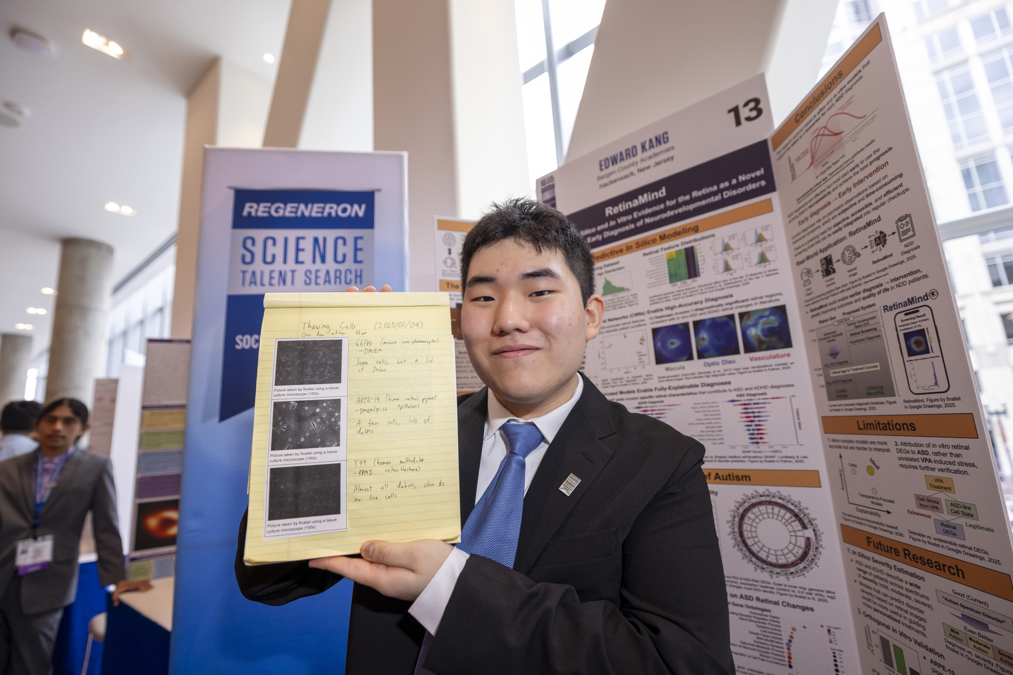 A senior at Bergen County Academies, a technical high school in Hackensack, N.J., Kang will attend the Massachusetts Institute of Technology in the fall. He earned second place and a $175,000 award in the 2026 Regeneron Science Talent Search in March, described by the Society for Science as the nation’s oldest and most prestigious science and math competition for high school seniors. His project, RetinaMind, used retinal images to train artificial intelligence models on subtle patterns linked to autism spectrum disorder (ASD) and attention-deficit/hyperactivity disorder (ADHD), while exploring gene changes through retinal cell models.