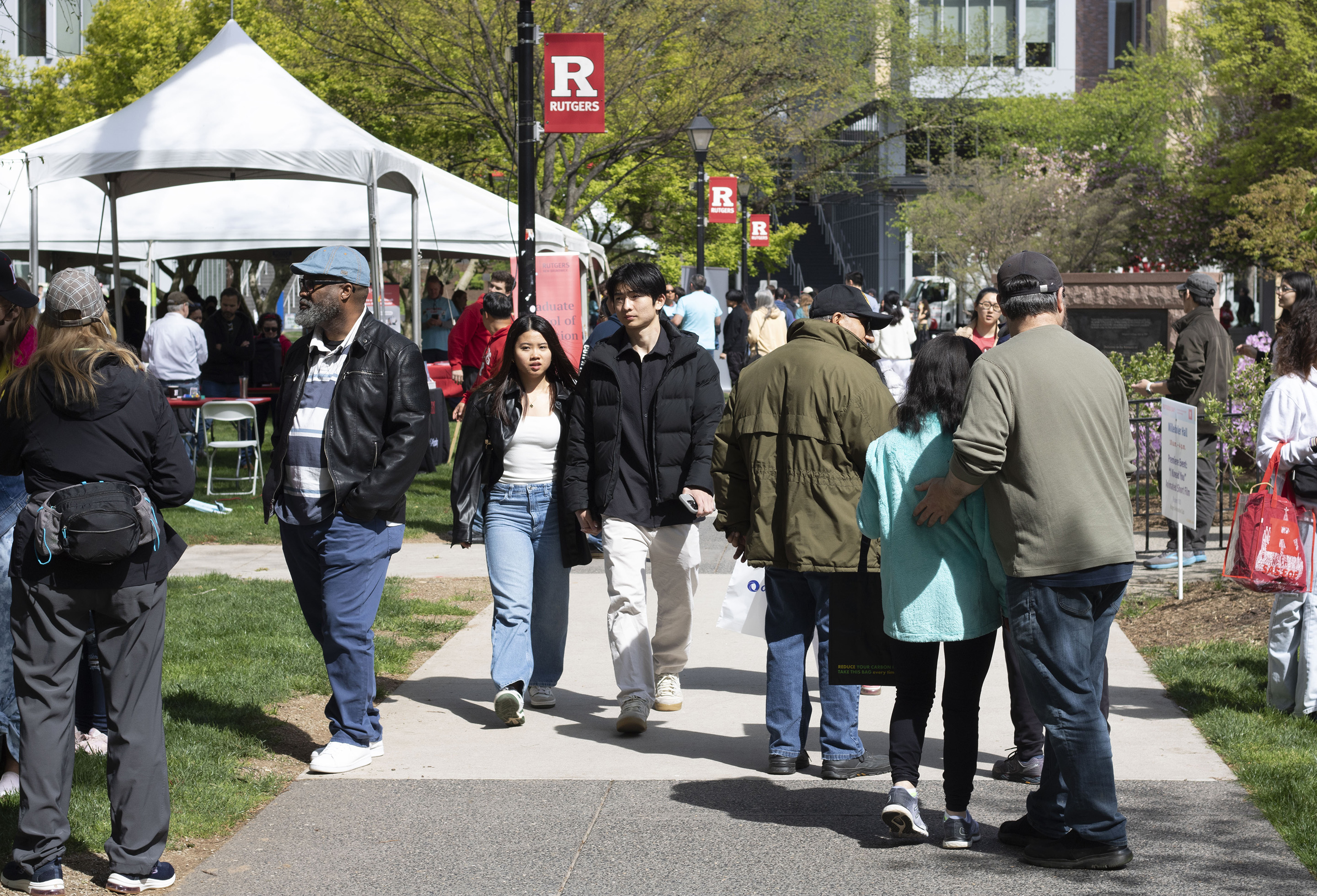 On the shaded, grassy Voorhees Mall, attendees cheered on the Marching Scarlet Knights as members of Rutgers’ marching band performed Saturday morning.